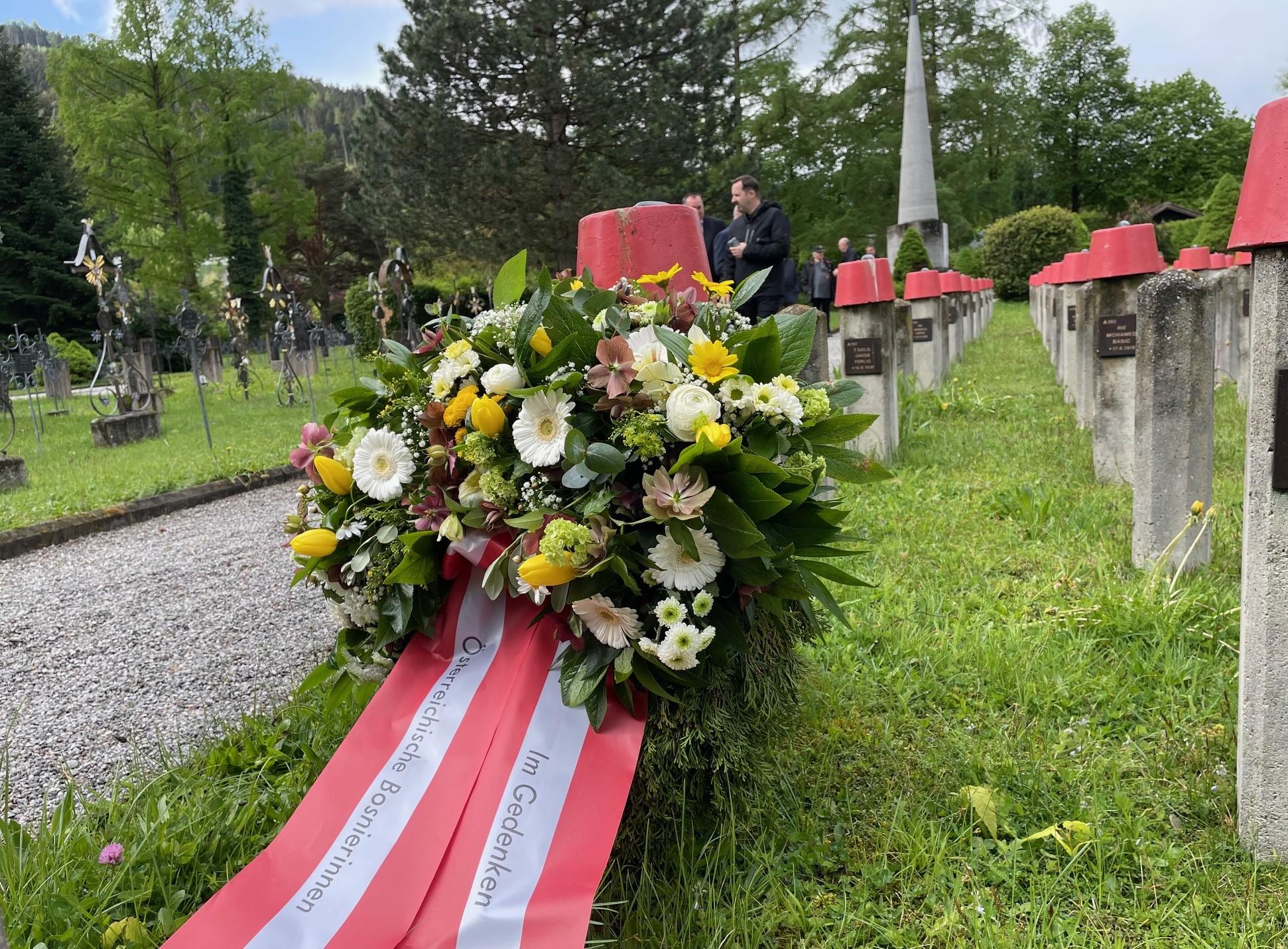 Velika zahvalnost ovdje pripada državnoj instituciji Austrijskog crnog krsta koja je odgovorna za brigu o groblju. Ali također se zahvaljujem u ime Austrijsko-bosanskohercegovačkog društva inicijatorima i koordinatorima Bosanskom Akademskom Društvu u Austriji i EU za ovu uzornu akciju!