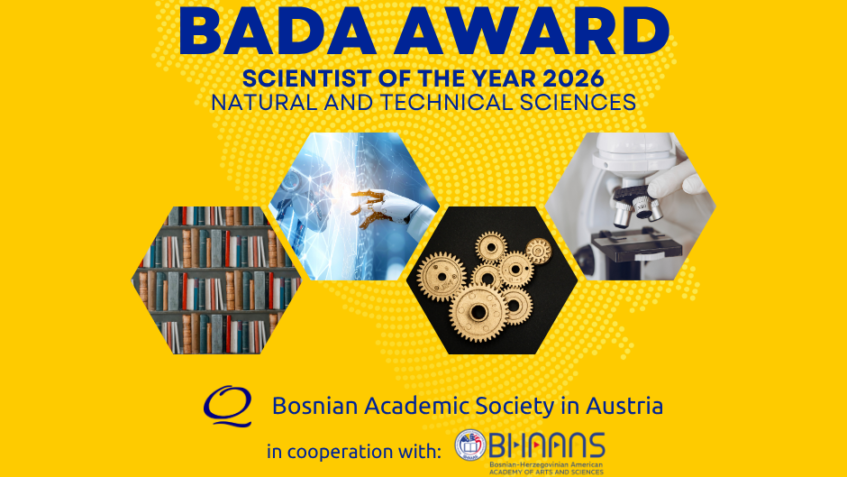 Bosansko akademsko društvo u EU (BADEU) poziva vas da se prijavite za dodjelu nagrade „ Naučnik/Naučnica godine 2026” iz oblasti prirodno-tehničkih nauka.
