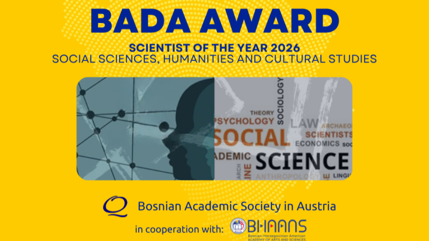 Bosansko akademsko društvo u EU (BADEU) poziva vas da se prijavite za dodjelu nagrade „ Naučnik/Naučnica 2026 “ iz oblasti društvenih nauka.