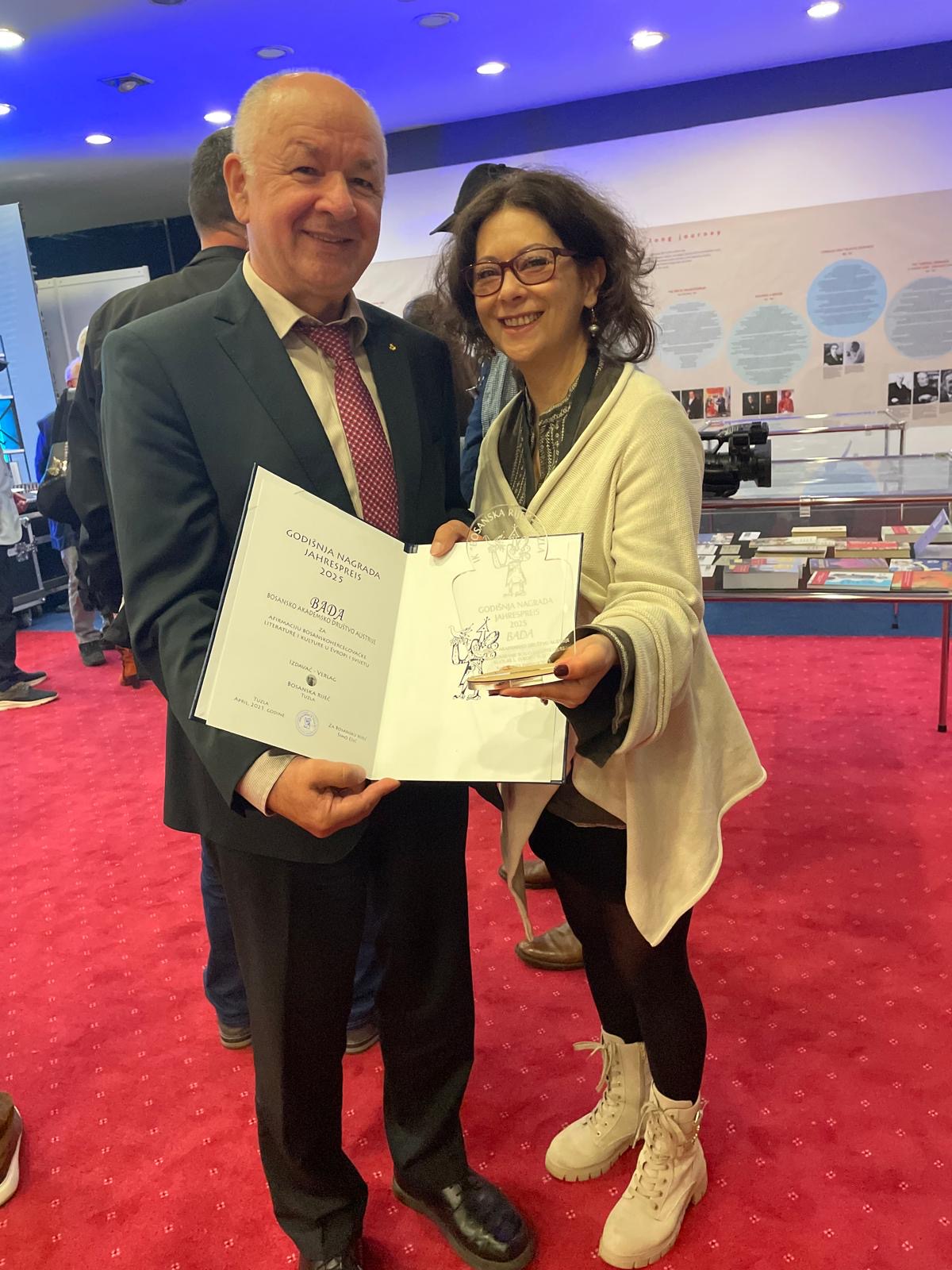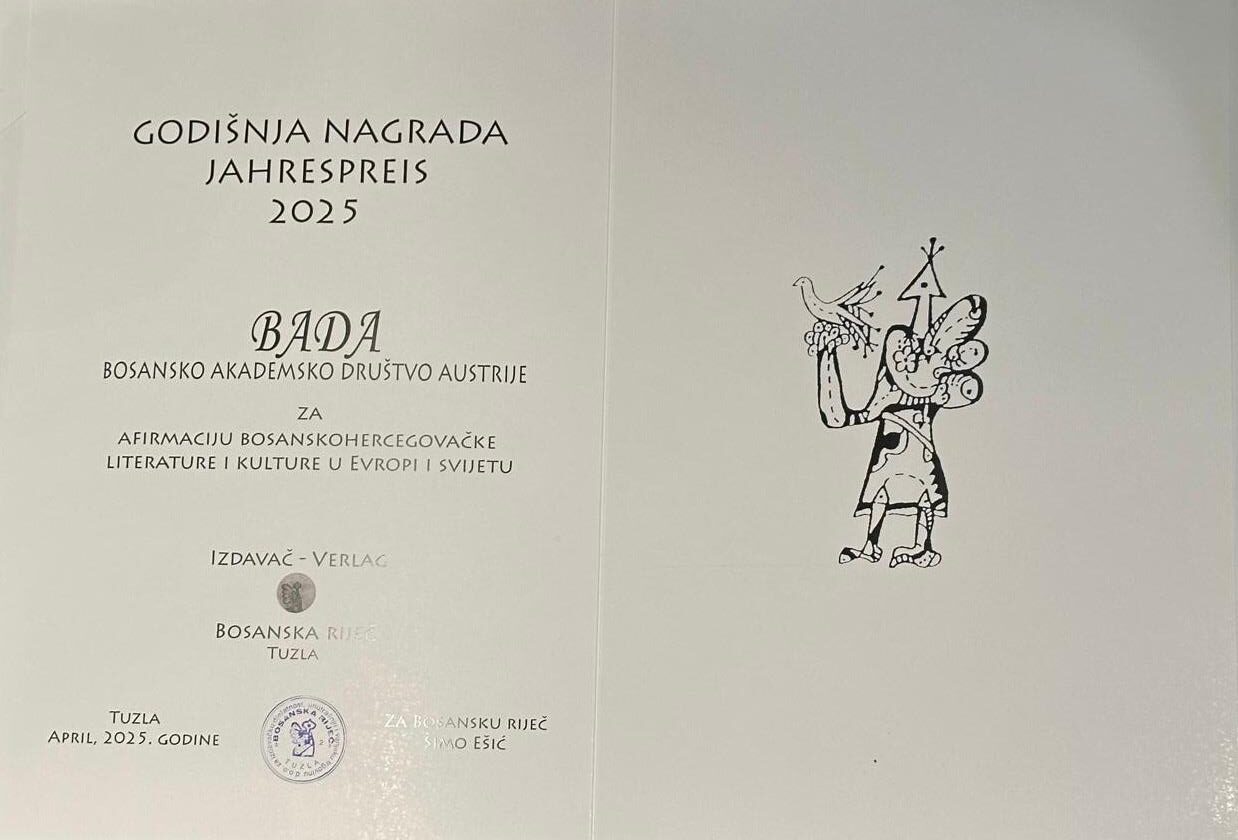 U sklopu 36. Međunarodnog sajama knjiga i učila u Sarajevu , izdavačka kuća „Bosanska riječ“ uručila je godišnju nagradu Bosanskom Akademskom Društvu u Austriji (BADA) za izniman doprinos u promociji bh. naslijeđa na međunarodnom planu. Kroz svoje aktivnosti, BADA predstavlja most između bosanskohercegovačke kulture i evropskog prostora, podržavajući studente, naučnike i umjetnike porijeklom iz BiH.