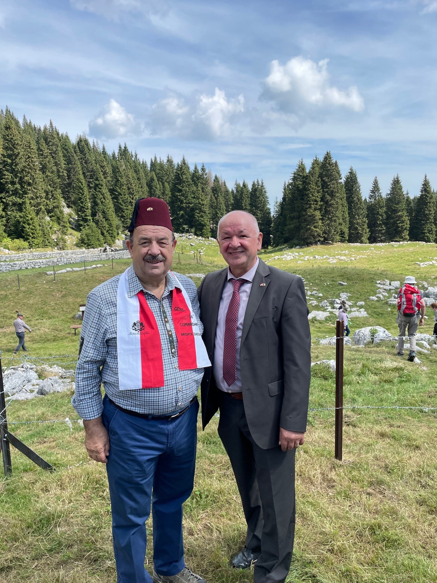 Nach der Zeremonie, die bei schönem Wetter stattfand, wurden auch Geschenke ausgetauscht. Carlo Lunardi überreichte dem Präsidenten der GBAA einen Soldatenhut – den Alpini-Hut –, und Siradj Duhan überreichte dem ehemaligen Bürgermeister einen Fes. Der Fes weckte großes Interesse bei den Italienern, sodass auch der General der italienischen Armee, General Pino, den Wunsch äußerte, sich mit dem Symbol der bosnisch-herzegowinischen Armee aus dem Ersten Weltkrieg fotografieren zu lassen.
